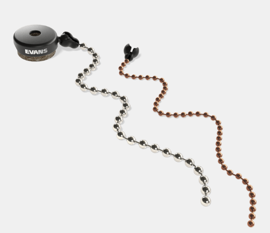 An update to the classic ProMark design, the EVANS Cymbal Sizzler provides riveted cymbal sound, without the hassle of drilling holes and inserting rivets. The new ball-joint design allows for swift application and removal of either of the two included chains.