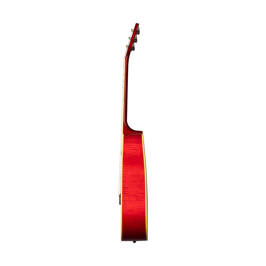 This famous flame maple-backed square-shoulder introduced in the early 60s is intertwined with one of the most revolutionary decades in popular music history. Its maple back and sides and long scale produce crisp, clear tone and projection, while the square-shoulder body adds balance and warmth. Classic Dove™ details include a bone nut and saddle, double antiqued multi-ply binding, nickel Grover® Keystone tuners, a traditional Dove truss rod cover, and a cherished pickguard featuring an inlaid mother-of-pearl Dove with hand-engraved and painted detailing.