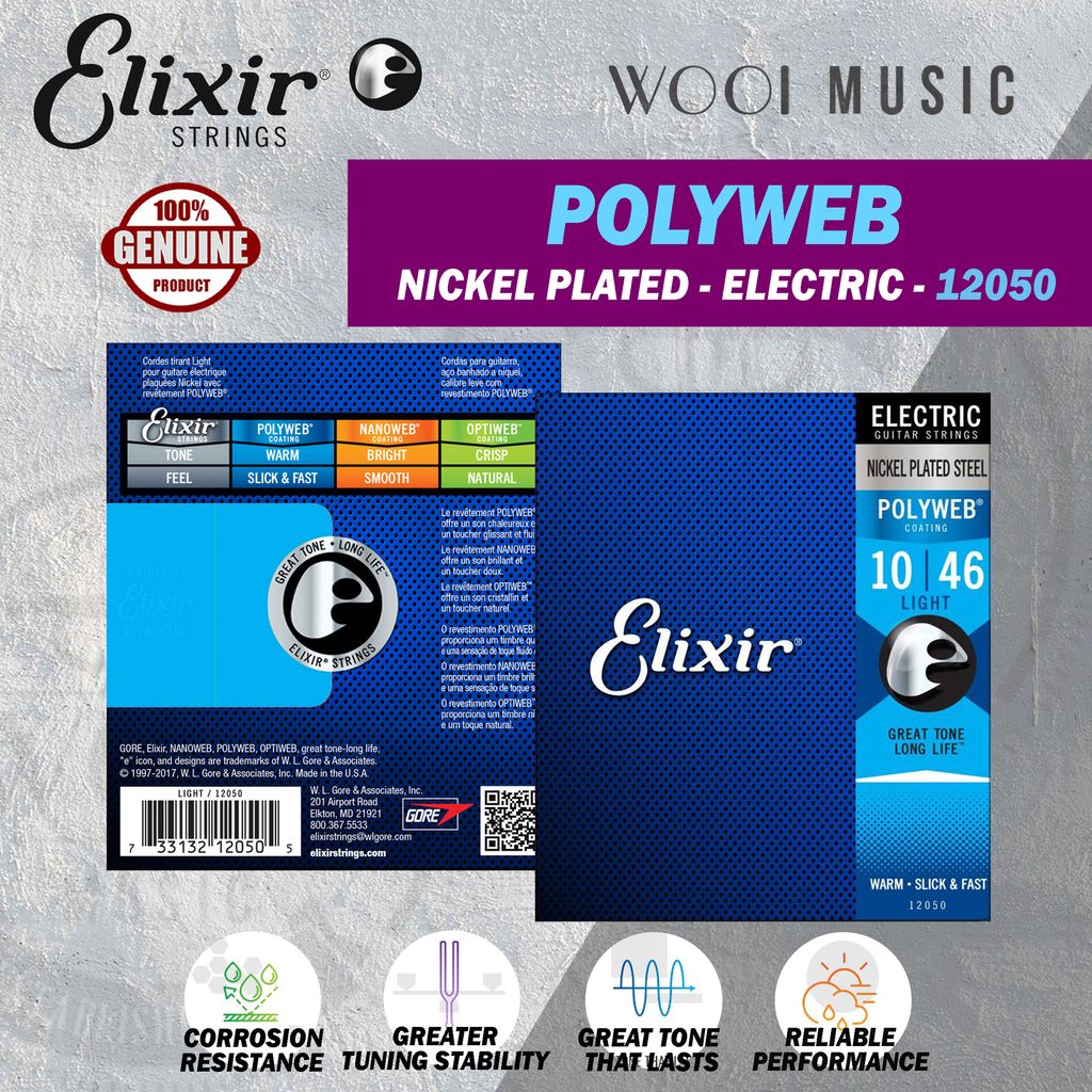Elixir 12050 Light Electric Guitar String Nickel Plated Steel POLYWEB Coating (010-046)