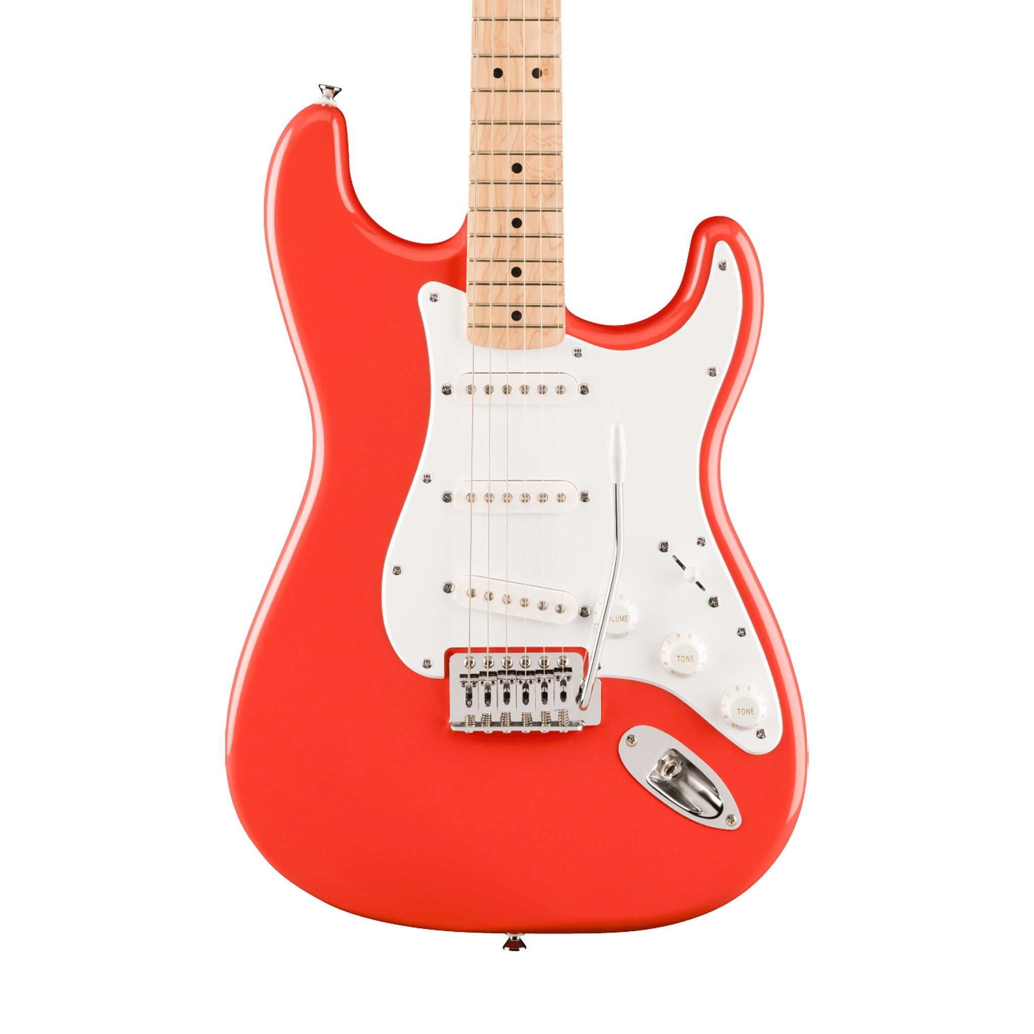 Squier FSR Sonic Stratocaster Electric Guitar w/White Pickguard, Maple FB, Fiesta Red