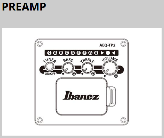 - Preamp: Ibanez AEQ-TP2 preamp w/Onboard tuner