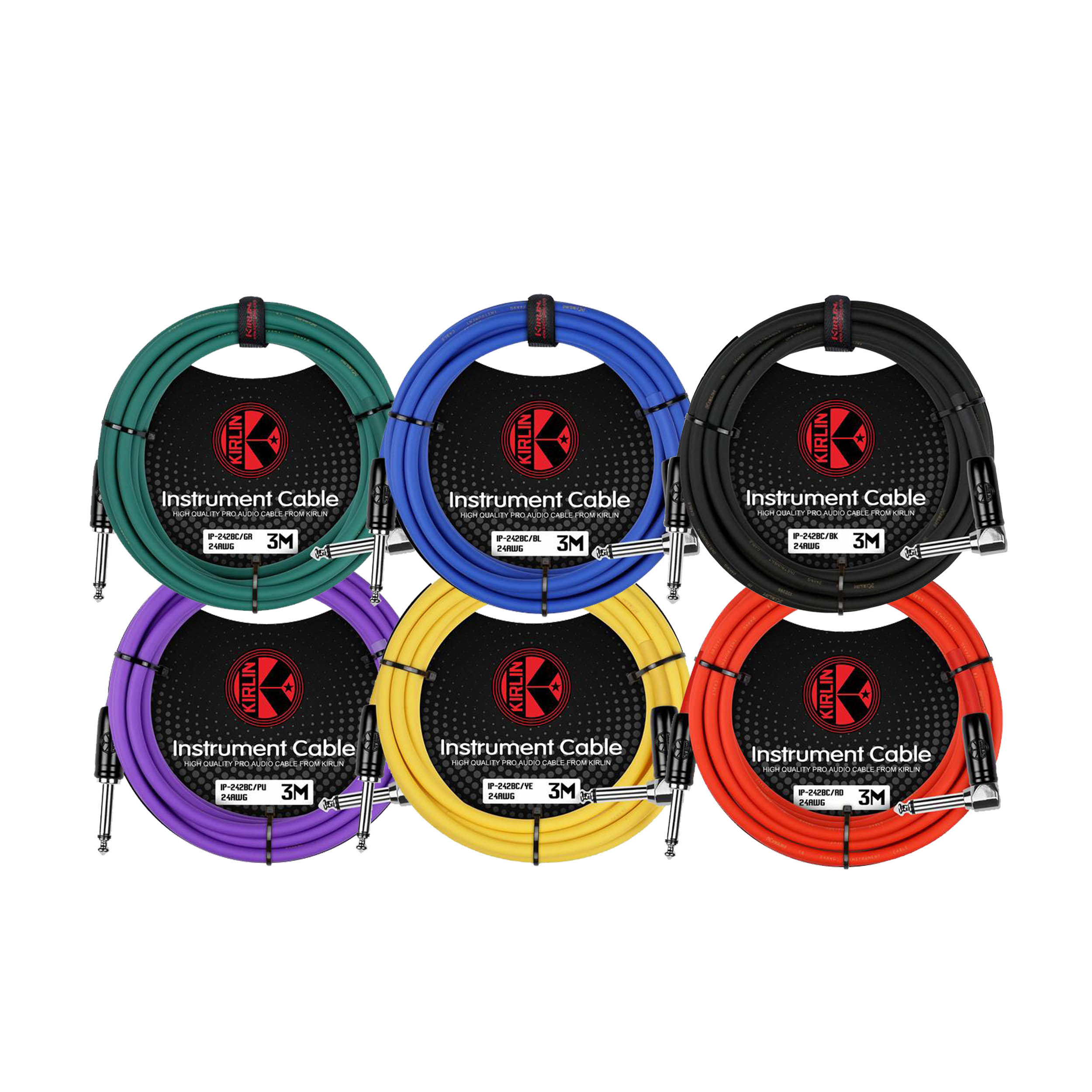 Kirlin IC-242-3M 24AWG Straight to Angled Instrument Cable - 3M / 10ft [For Guitar / Bass / Keyboard] (Black / Purple / Orange / Blue / Yellow / Pink / Green)