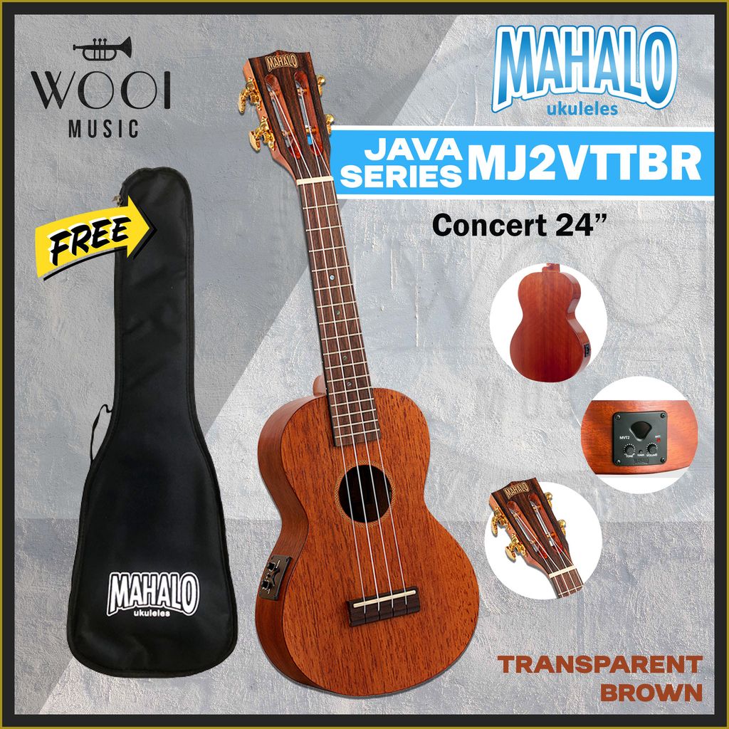 Mahalo MJ2VTTBR Java Series Concert Ukulele 24” Built In EQ & Tuner w/bag - Transparent Brown