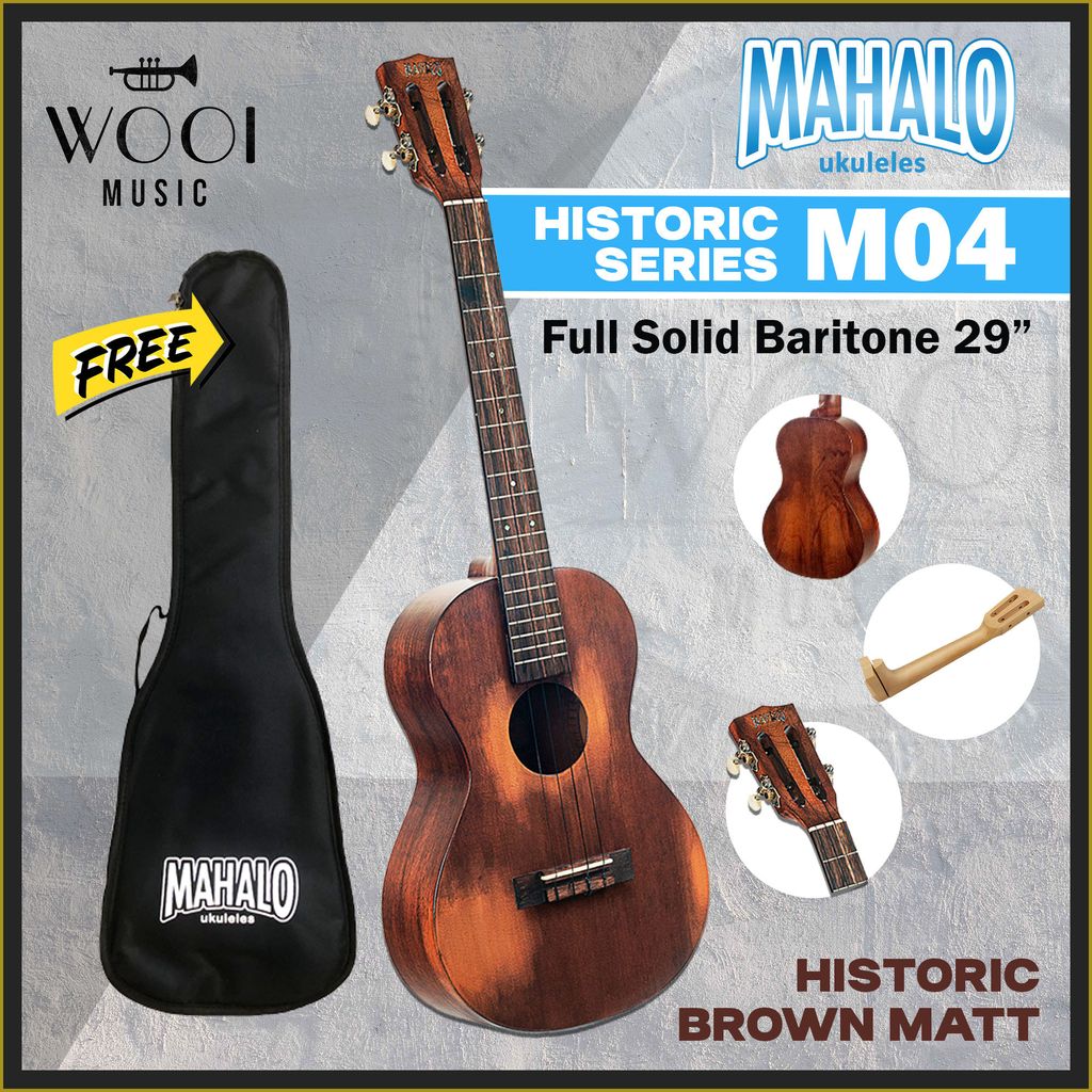 Mahalo MO4 Historic Series Full Solid Baritone 29” Ukulele w/Bag - Historic Brown Matt