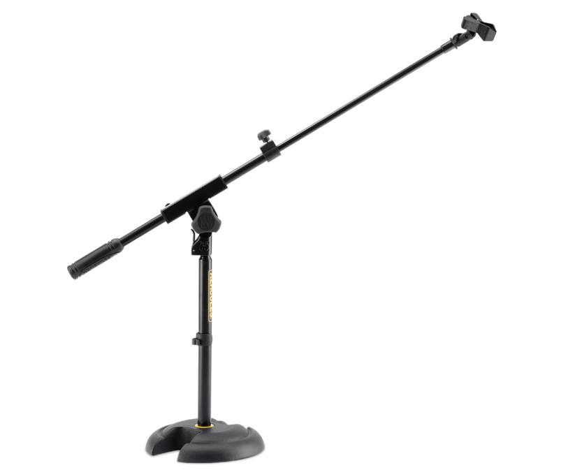The HERCULES Low Profile Mic Stand MS120B with telescoping boom is ideal for drum and amplifier applications.